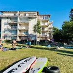 Goście obiektu noclegowego mogą cieszyć się komfortem przebywania w zakwaterowaniu, gdzie znajduje się wyposażona kuchnia z kuchenką mikrofalową, czajnikami elektrycznymi i lodówką oraz urządzeniem do parzenia kawy/herbaty. Do przystanku autobusowego Darnay Kalman ter idzie się spokojnym krokiem stosunkowo w małej odległości. Obiekt oferuje dostęp do parku wodnego, słonecznego tarasu i miejsca na piknik, a także taras z widokiem na jezioro. Ponadto w okolicy można uprawiać zajęcia wodne, windsurfing i jazdę konną.